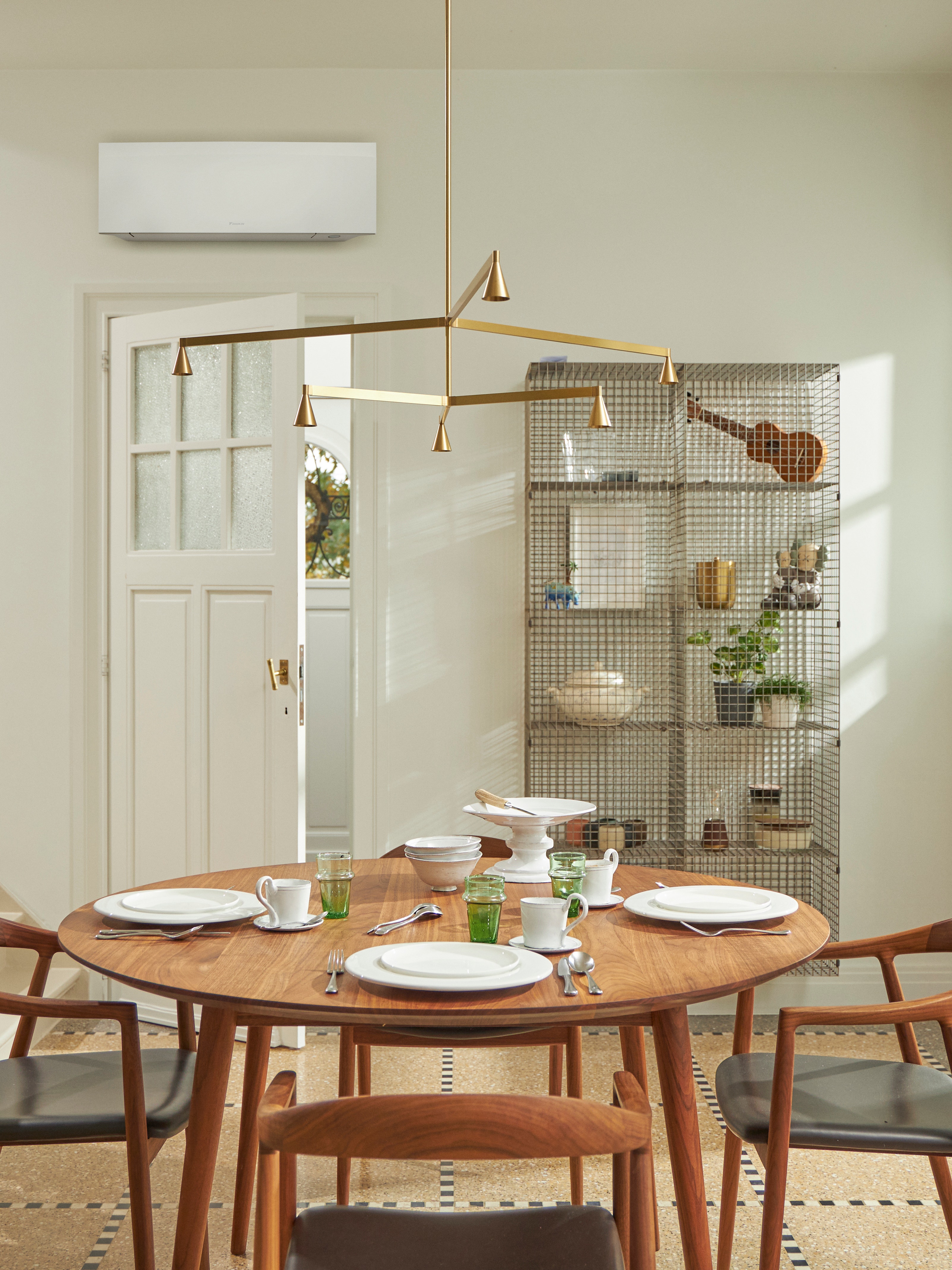Du kan vælge en vægmonteret, gulvplaceret eller skjult loftsmonteret indendørsenhed. Alle Daikins modeller er designet til at gå i ét med din indretning.