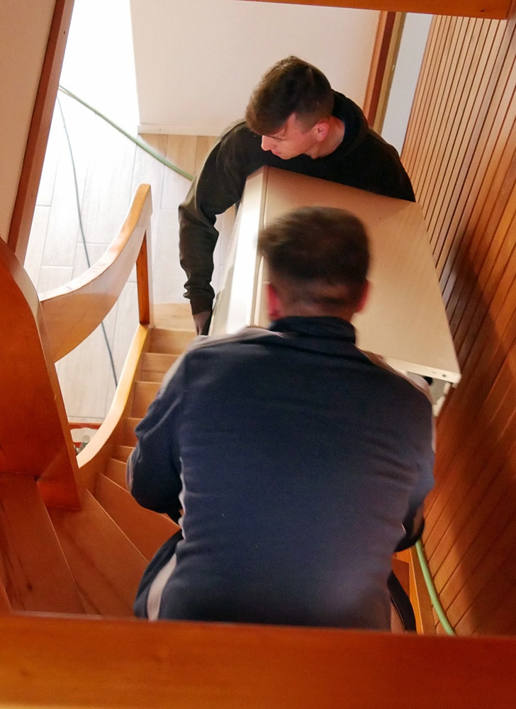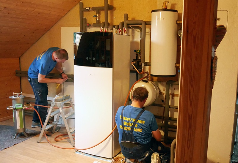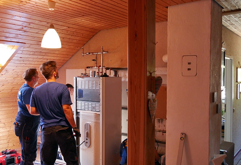 Den kompakte enhed med et beskedent grundareal (59,5 x 62,5 cm) og en kun 1,65 m høj indendørsenhed var et vigtigt kriterium for valget af DAIKIN Altherma 3 H HT varmepumpen. Varmeanlægget hos ægteparret Weinmann befinder sig nemlig ikke som normalt i kælderen, men oppe under taget. Indendørsenheden skal derfor transporteres gennem et smalt trapperum. "Vores trappe er kun 85 cm bred på det smalleste sted, og derfor valgte vi denne kompakte variant, som kan passere gennem vores smalle trapperum", siger Volker Weinmann. En yderligere fordel ved DAIKIN Altherma 3 H HT varmepumpen er den meget støjsvage udendørsenhed - kun 35 dB(A) (i tre meters afstand). Det svarer omtrent til støjniveauet på et bibliotek, hvor folk kun må hviske. Det betyder, at naboerne ikke bliver forstyrret, og at varmepumpen også er velegnet til mindre grunde og tætbebyggede boligområder.