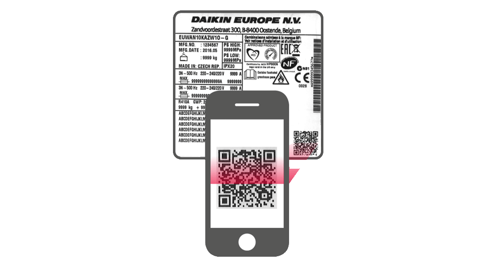 Dank dem QR-Code haben Sie schnellen Zugriff auf die Informationen und Dienste zu Ihrem Gerät. Bevor Sie jedoch beginnen können, müssen Sie eine App des QR-Code-Scanners für Ihr Mobilgerät herunterladen. Sie können eine QR-Scanner-App im App Store von Apple, in Google Play Store oder im Windows App Store herunterladen.