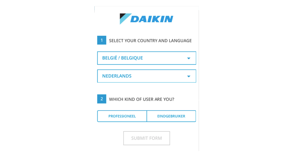 Wählen Sie Ihr Land und die bevorzugte Sprache aus.